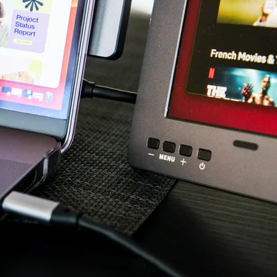 Découvrez le DualView Boost Pro, le double écran le plus qualitatif jamais conçu. Fabriqué entièrement en aluminium de qualité supérieure, il offre deux moniteurs 14" or 15.6" Full-HD 1080p antireflets et une seule connexion USB-C. Parfait pour vous accompagner partout.